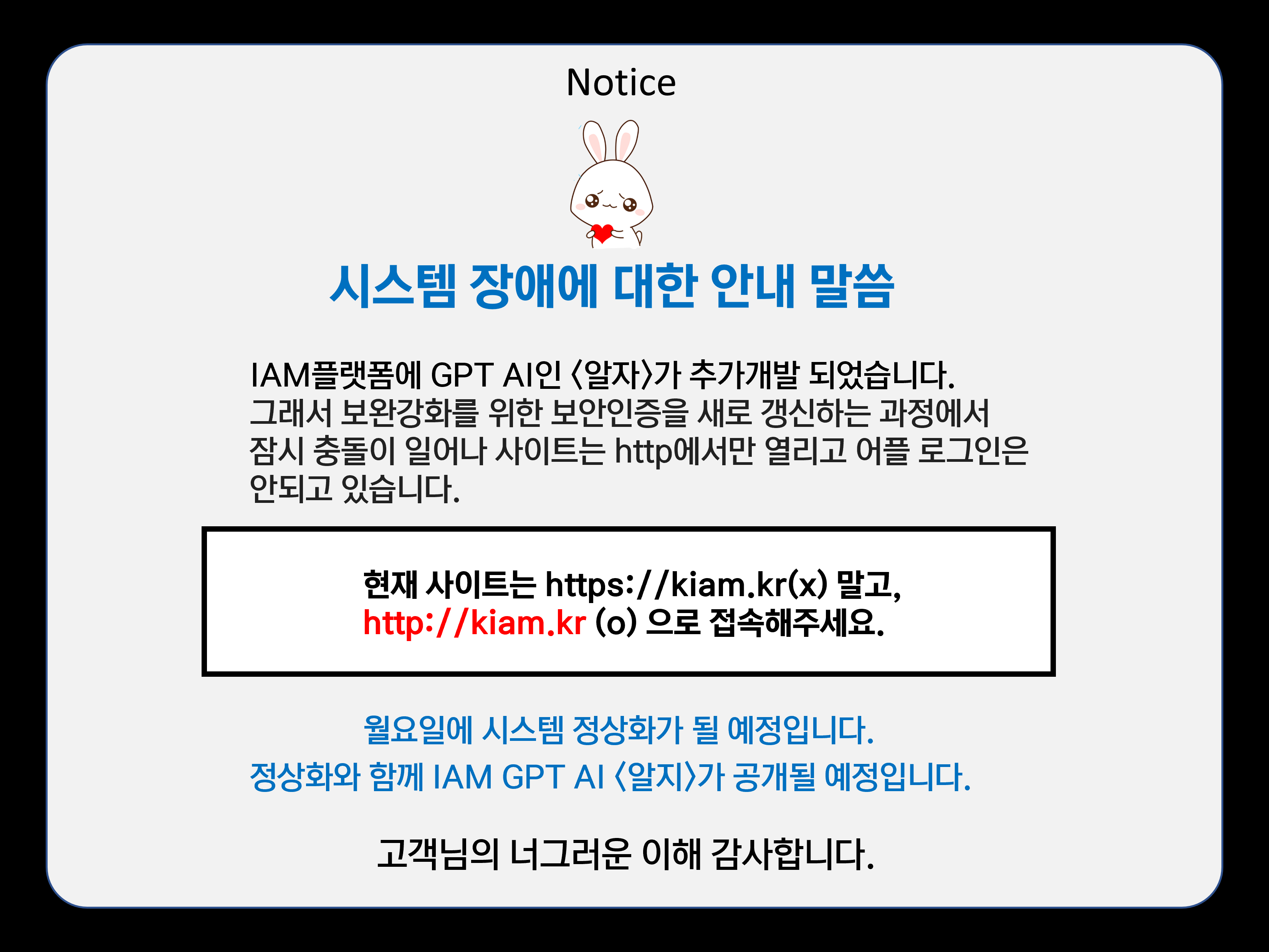 [공지 제230304-01호] IAM플랫폼 시스템 장애 공지 2023-03-04